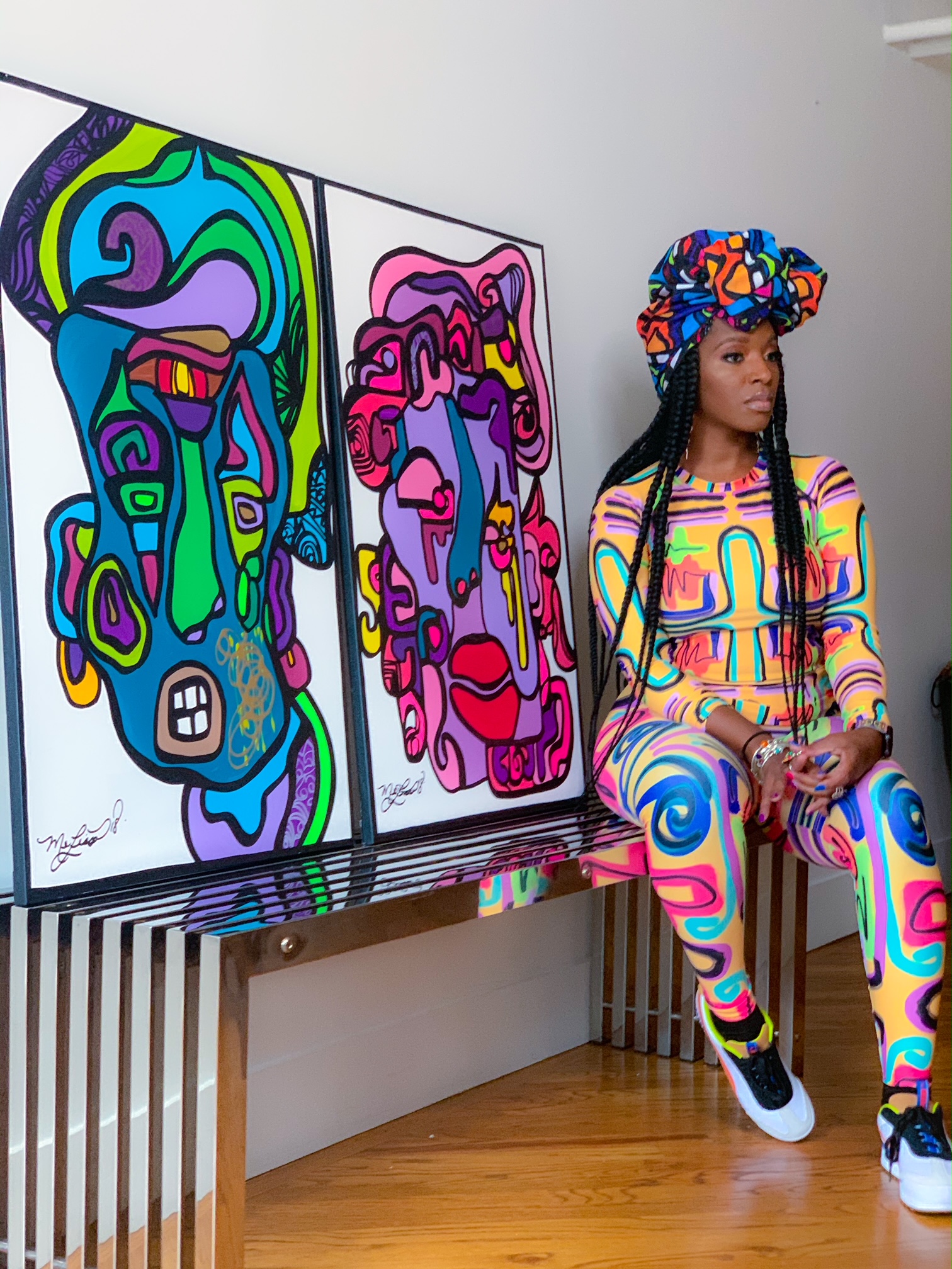 Melissa Mitchell is an Atlanta-based, self-taught artist, who has a love for vibrant colors, unique shapes, and bold dark lines. She attributes her Bahamian heritage, melodic sounds and the colorful world around her as her greatest inspirations. Since February 2014, she has created over 500 original art pieces, painted over 40 larger than life murals, has been featured in various articles including The Huffington Post and sold custom pieces housed around the world.
